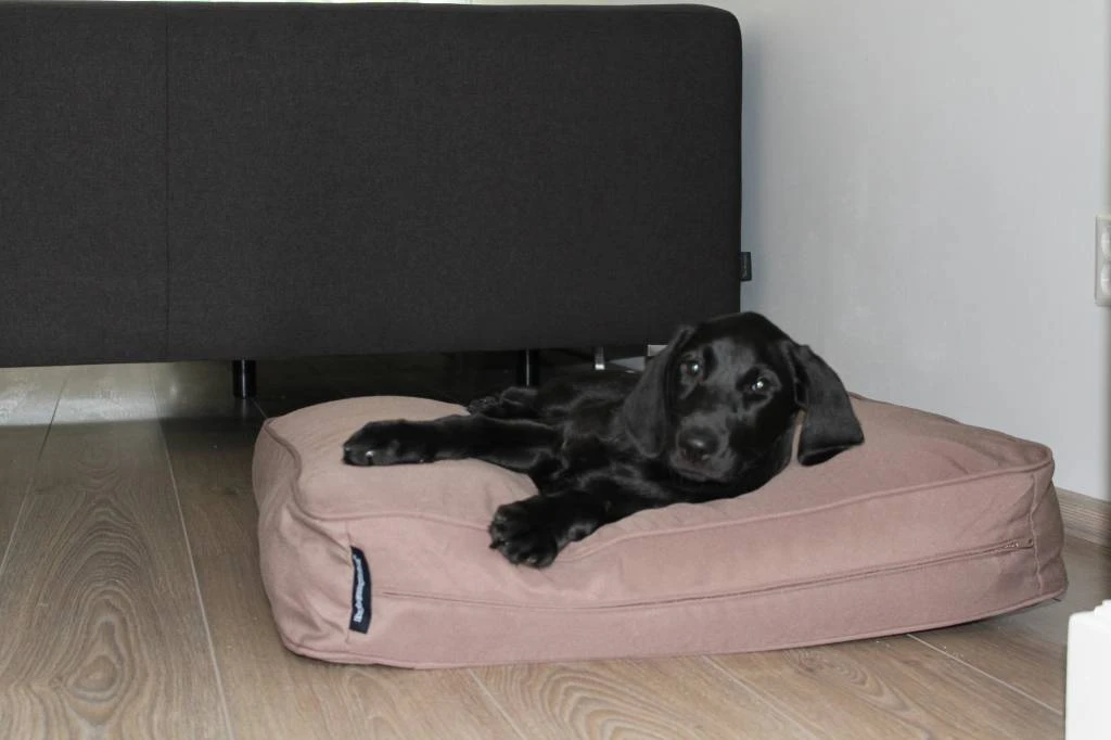 Een mooi hondenbed bestaande uit een binnenbed gevuld met EPS parels en een taupe buitenhoes. De EPS parels zorgen ervoor dat de hond comfortabel in de bench kan liggen.
