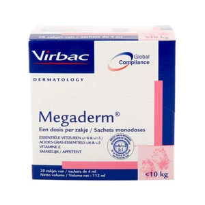 Megaderm is een smakelijk aanvullend diervoeder voor hond en kat op basis van essentiële vetzuren, zink en vitaminen. Megaderm dient ter bevordering van de gezondheid van huid en vacht.